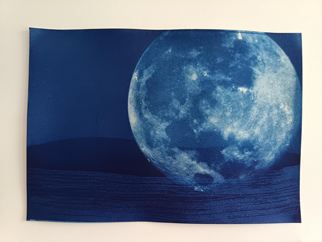Tirage réalisé en cyanotype à la main dans mon atelier sur papier aquarelle 300g.